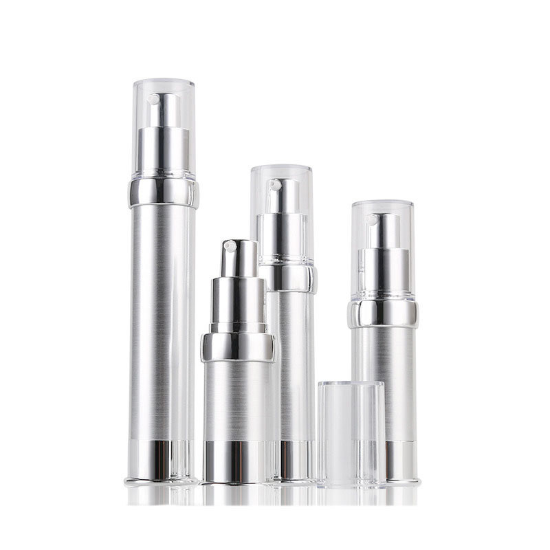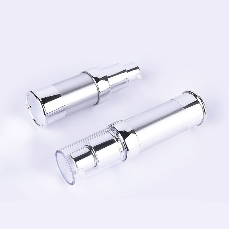 محلول زجاجة محلول مخصص للسيدات بلاستيك أبيض بدون هواء دمية تلميع 10 مل -30 مل جسم فضي
